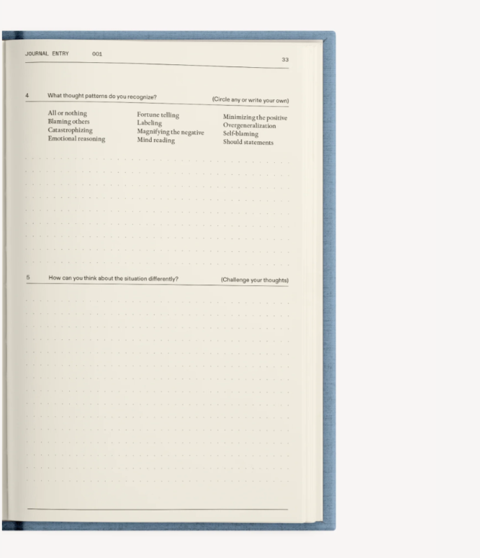 Reduce anxiety, manage stress, and become more aware of your thought patterns with this easy-to-use, guided notebook. Utilizing Cognitive Behavioral Therapy, a rigorously-tested and widely-used treatment, you’ll develop the skills to identify, challenge, and change unhelpful thought patterns so you can feel better.